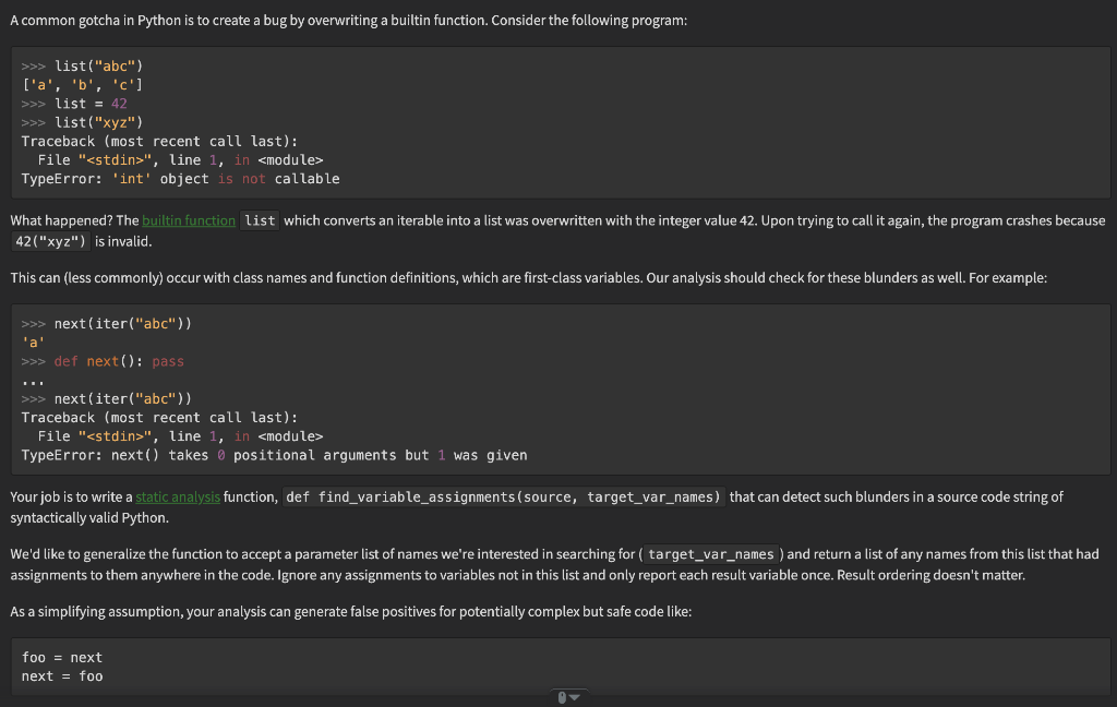 Solved A Common Gotcha In Python Is To Create A Bug By Chegg Com
